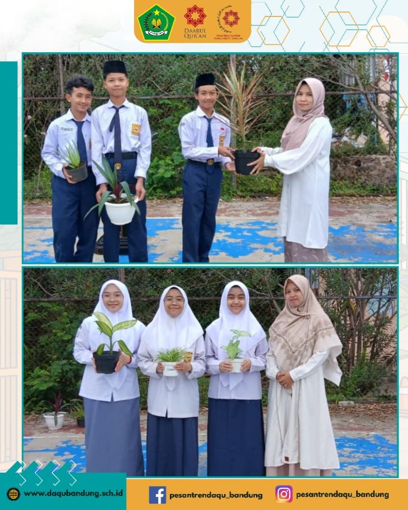 Momentum apel pagi awal semester tersebut juga dirangkai dengan peringatan Hari Sejuta Pohon Sedunia yang ditandai dengan penyerahan pohon secara simbolik dari santri kepada pesantren sebagai upaya penghijauan. Dalam kesempatan itu, Ust. Ihsan menyampaikan, “Apel pagi ini kami maknai sebagai awal semester sekaligus peringatan Hari Sejuta Pohon, sebagai bentuk kepedulian kita terhadap alam dan lingkungan, agar pesantren tetap rindang dan hijau,” tuturnya. Melalui kegiatan ini, Pesantren Unggulan Daarul Qur’an Bandung terus menghadirkan pendidikan yang memadukan nilai keilmuan, pembinaan karakter, serta kepedulian lingkungan, sehingga tercipta suasana belajar yang nyaman, asri, dan mendukung lahirnya generasi Qur’ani yang berwawasan masa depan.