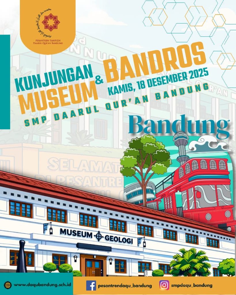 Belajar tidak selalu di kelas. Seluruh santri dan tenaga pendidik SMP Daarul Qur’an Bandung melaksanakan kegiatan edukatif pada Kamis (18/12/2025) melalui kunjungan ke Museum Geologi dan berkeliling Kota Bandung menggunakan BANDROS (Bandung Tour on Bus). Setiap sudut kota menyimpan cerita, setiap koleksi museum membuka wawasan, menjadikan proses belajar terasa lebih hidup, seru, dan bermakna