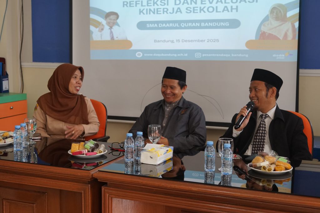 Refleksi dan Evaluasi Kinerja Sekolah tahun 2025 di SMA Daarul Qur’an Bandung menjadi momentum penting untuk menguatkan peran kepala sekolah dan ekosistem pendidikan pesantren dalam mewujudkan layanan pendidikan yang bermutu dan berkarakter. Kegiatan ini diselenggarakan oleh Dinas Pendidikan Provinsi melalui Kantor Cabang Dinas Wilayah VII, dengan pengawas pembina SMA Daarul Qur’an Bandung, Ibu Lina Kristanelina, M.Pd., sebagai pemantik utama proses refleksi dan evaluasi di satuan pendidikan.